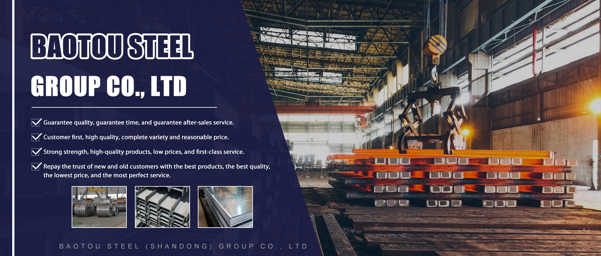 BAOTOU STEEL (SHANDONG) GROUP Co., Ltd is a multi-specialty supplier who was founded in 2021 year, registered Capital of 66.88 Million Yuan. It is Specialized in steel plate, steel pipe, steel coil, GI steel, PPGI&PPGL, Steel Profile, Alloy Steel Series, Aluminium&Copper series product etc.